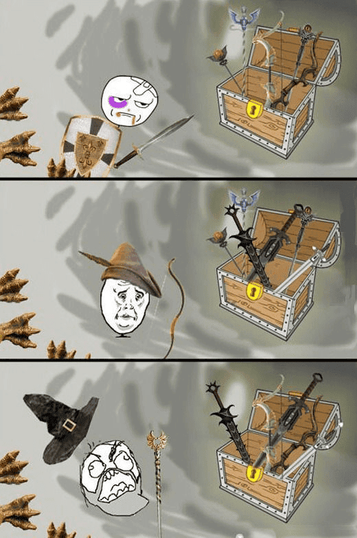 Hãy tưởng tượng, bạn là một pháp sư bỗng dưng nhận được bộ giáp sắt nặng trịch, trong khi anh chàng chiến binh kia lại đang loay hoay với cây trượng phép thuật!